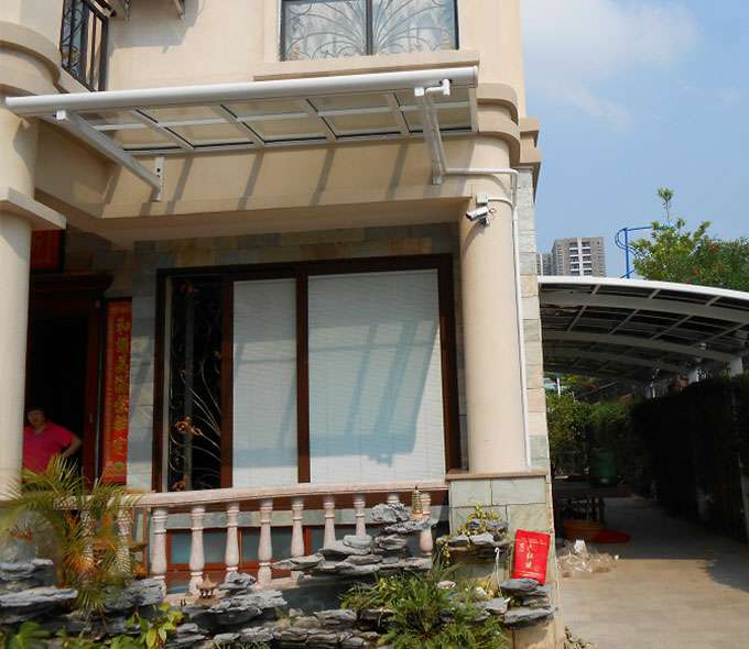 西安英博园艺设计与施工有限公司雨棚系列产品是高强度铝合金和聚碳酸酯板(耐力板)的结合。主体结构全部采用高品质、高强度铝合金材料精加工而成,表面特殊的工艺处理,具备氧化保护,不生锈,不变色,大大提高了雨棚的使用寿命。