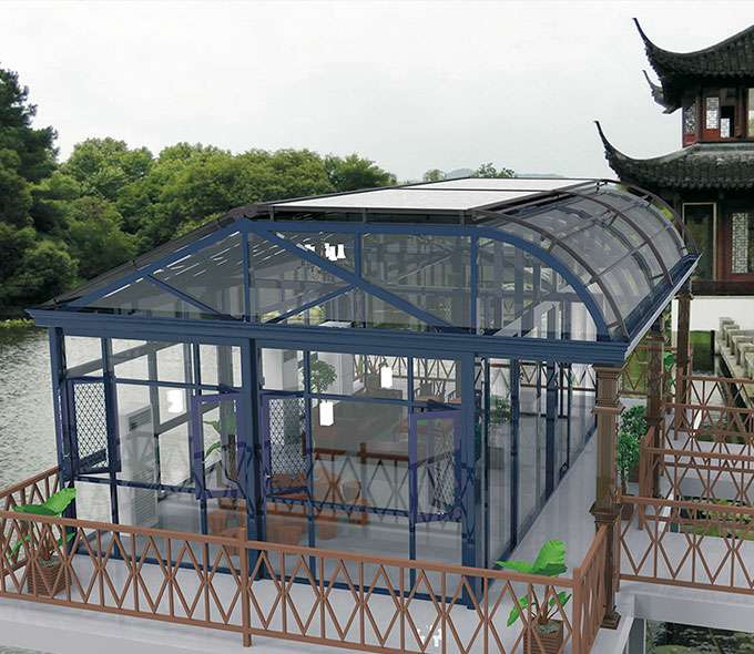 西安英博园艺设计与施工有限公司阳光房智造系统可实现快速的模块化生产和安装,主体结构使用搭桥加万向拼接工艺,安装免角码,切割免角度,无论加工还是安装都更加快速,效率与质量兼得。
